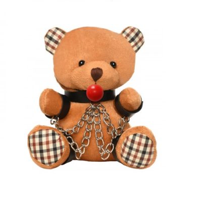 Oso de color claro, vestido con bragas de cuero PU, una ...