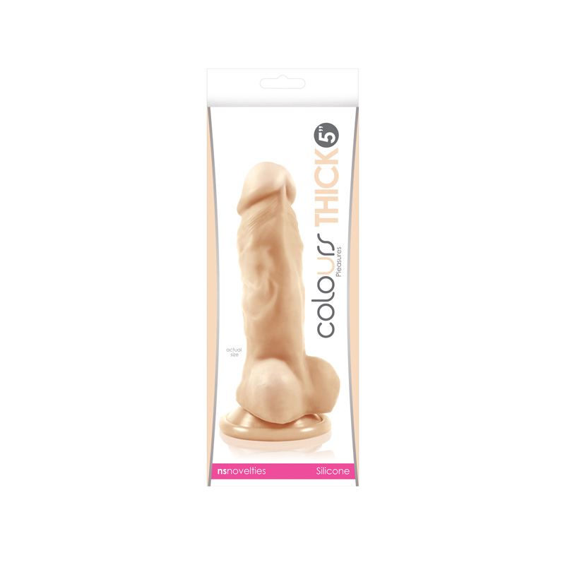 Colours Pleasures Thick 5″ Dildo White: Es un dildo realista, aterciopelado y suave al tacto pero firme para una penetración sin esfuerzo, hecho de silicona de grado medico, segura para el cuerpo. De gran tamaño, de 12.5 cm de longitud, ligeramente curvado y muy veteado proporcionando placer inconmensurable. La base versátil de la ventosa de este dong O-Ring es compatible con cualquier arnés y súper fuerte para la exploración creativa. No porosos para una fácil limpieza sin preocupaciones.