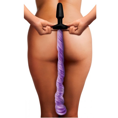 TZ Purple Pony Tail Anal Plug: Despierta la fantasía en tu relación con esta divertida cola de pony, y se un dulce semental,esta adornado con una cola larga de fibra sintética, que podrás cepillar, trenzar y agitar al ritmo que sacudas esa cadera, la cola de pony presenta su plug anal de silicona premium libre de ftalatos seguro para el cuerpo, el material no es poroso y es muy fácil de limpiar, esta perfectamente dimensionado con un buen peso y tamaño, para mantenerlo en su lugar, tiene una forma cónica para una inserción cómoda y segura…